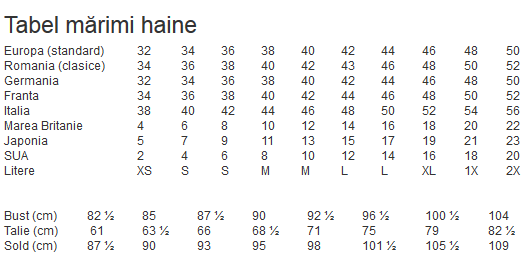 Tabel cu marimi haine